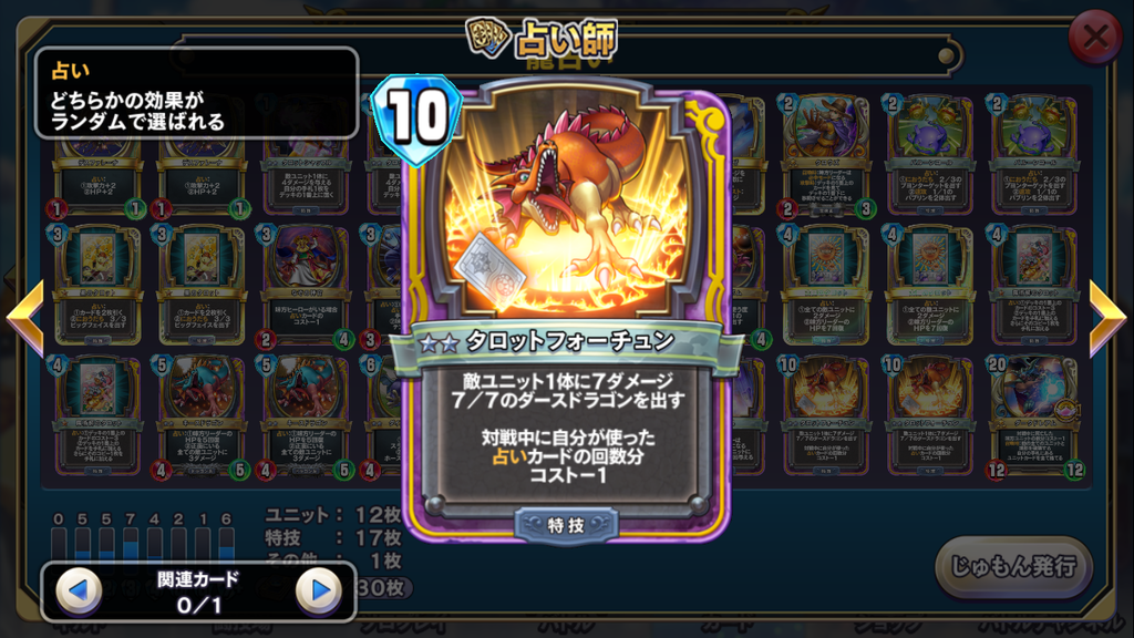 タロットフォーチュンの数を増やすことで、ユニットのほぼ確定処理と同時に高スタッツなダースドラゴンを召喚することができます。